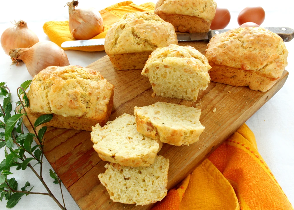 PLUM CAKES WITH ONIONS AND SCAMORZA CHEESE