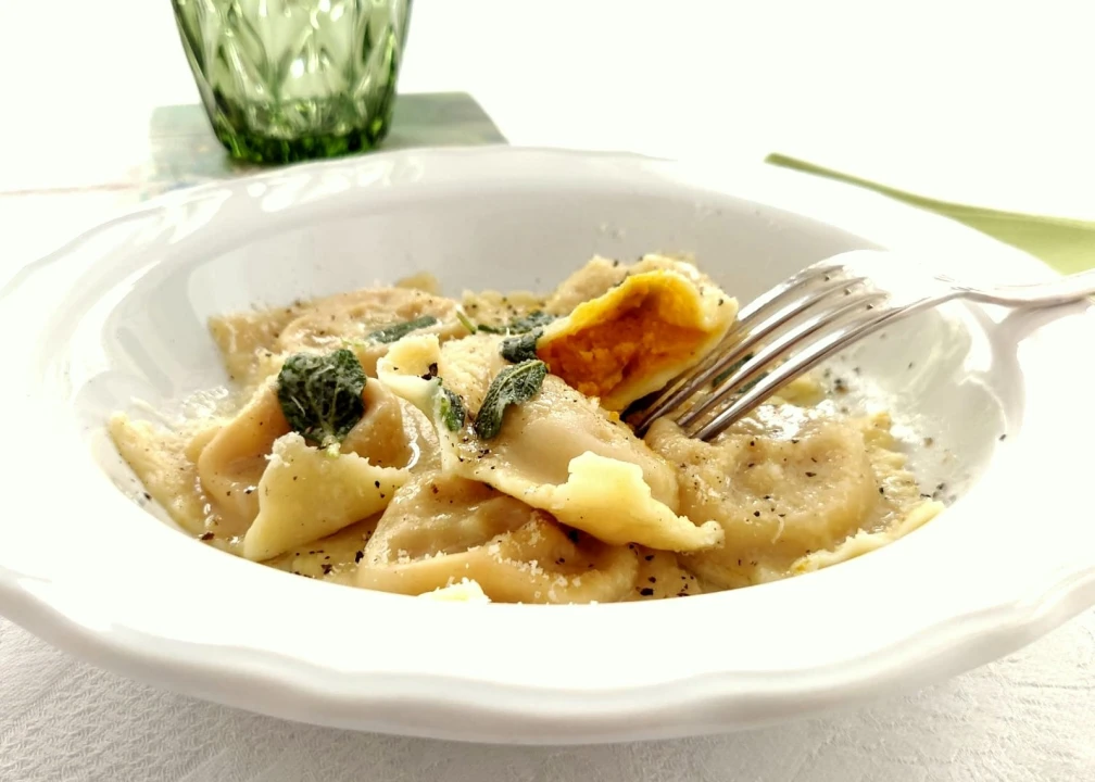 Fresh pasta is doubly delicious when you can both make and eat it! Ravioli filled with pumpkin is one of the most classic pasta dishes of Lombardy, in particular of Mantua; with its sweet and spicy taste, it is pure poetry for the palate.