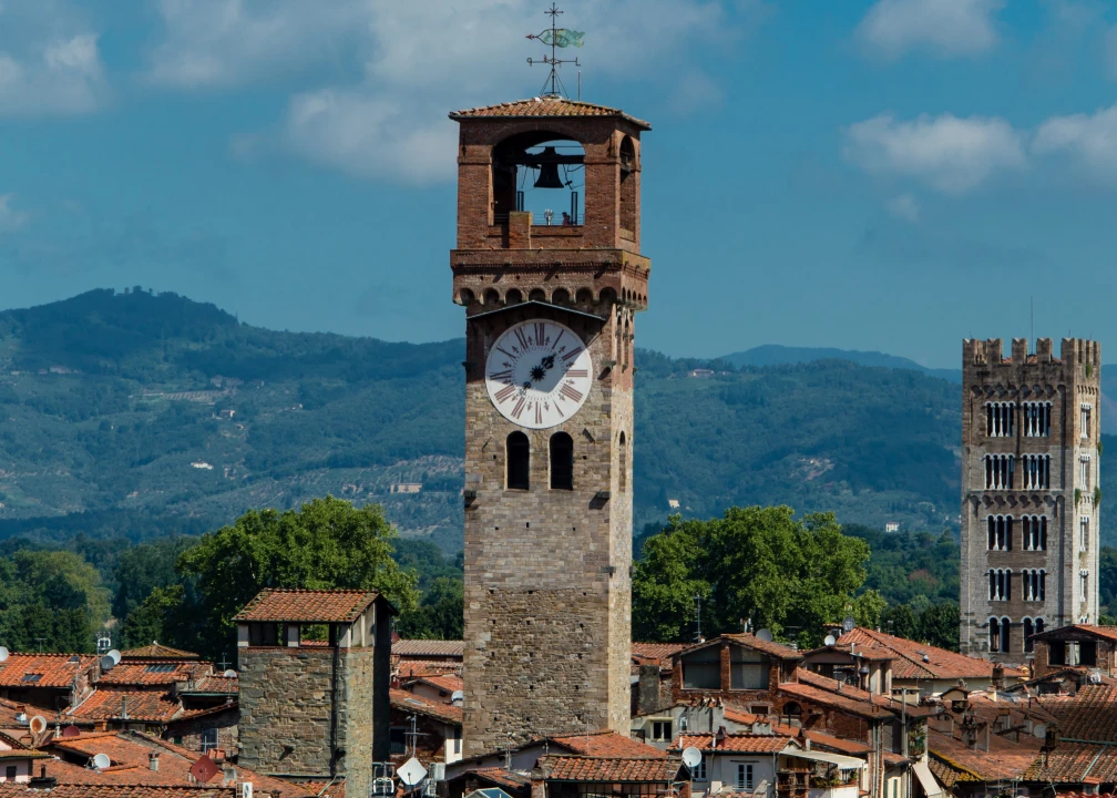 The old town has preserved its Medieval appearance (due to its finely-worked architecture), ancient and numerous churches (Lucca is also called the "city of 100 churches") and, thanks to its many towers, bell towers and monumental Renaissance palaces. Among the towers, the Clock Tower is the highest, at 164 ft; here you can admire the hand-wound clock mechanism and the internal wooden staircase, with its well-preserved 207 steps. The Torre Guinigi is one of the most representative monuments of Lucca, curiously displaying a fan of holm oaks at its top.