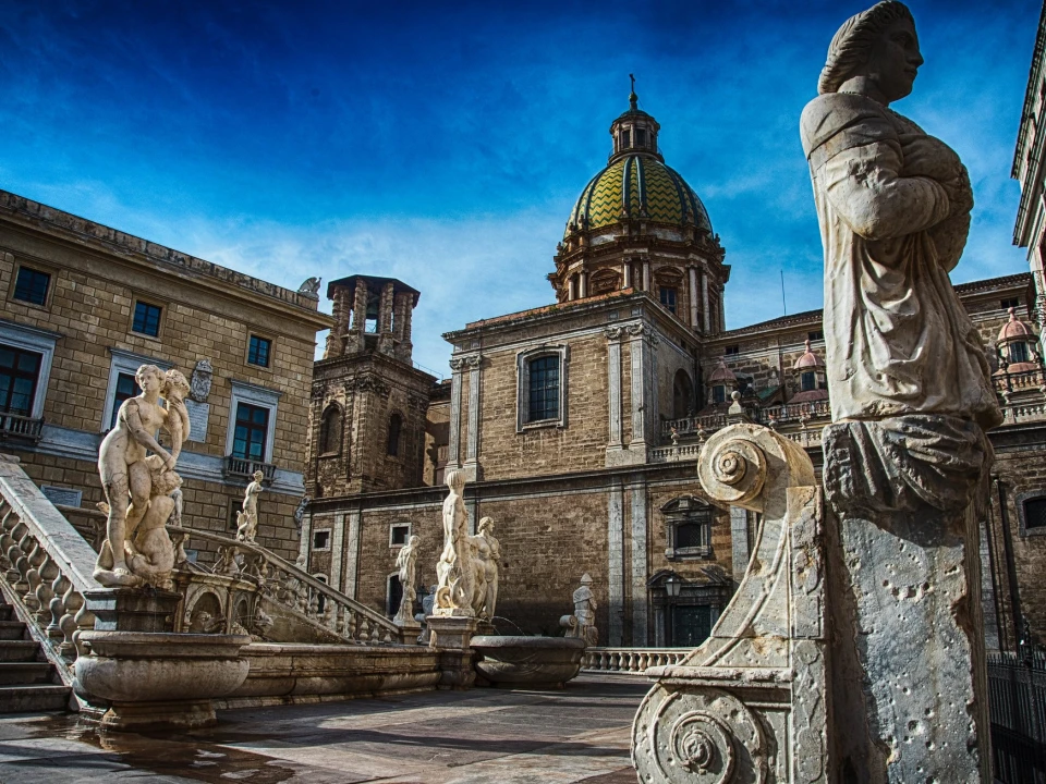 The elegant Martorana, with its high, arcaded bell tower, dates back to the Norman epoch; meanwhile, the monumental Pretoria fountain that inhabits the neighboring homonymous piazza is Baroque.