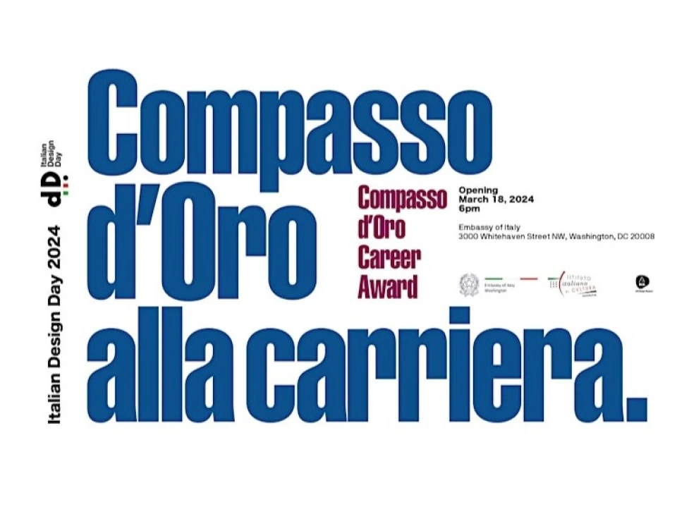 Starts on Monday, March 18 · 6pm EDT. Italian Cultural Institute @ Embassy of Italy - 3000 Whitehaven St, NW Washington, DC. The Embassy of Italy in Washington and the Italian Cultural Institute of Washington invite you to the opening of “Compasso d'Oro alla Carriera - Compasso d'Oro Career Award”, an exhibition promoted and organized by the Associazione Design Industriale.