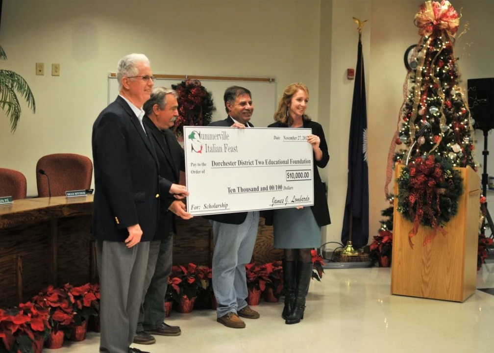 Officials with the Italian Feast showed their support for Dorchester District Two by handing over a $10,000 check to the Dorchester District Two Educational Foundation.