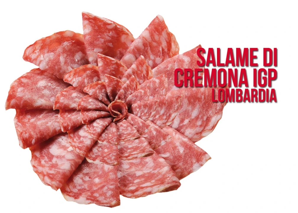 PGI Cremona Salami is made from selected pork that is ground, seasoned with salt and crushed garlic and stuffed into natural casings. The specifications require the exclusive use of pork from Italian pigs reared in the Prosciutto di Parma and Prosciutto di San Daniele production areas.