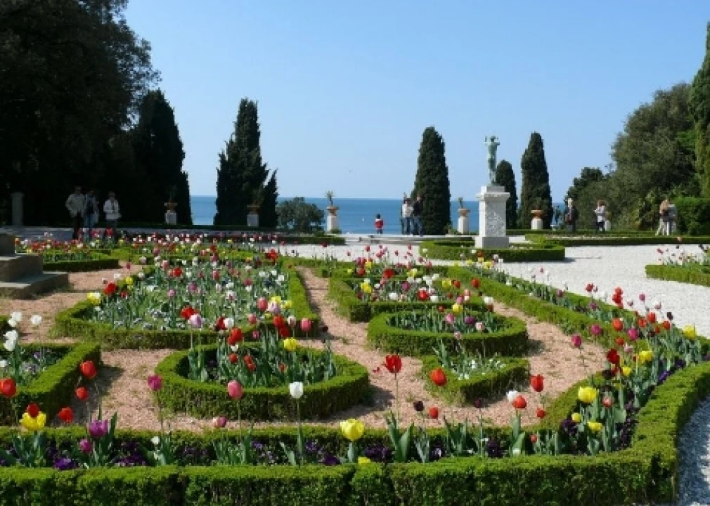 The Miramare Castle stretches from the promontory of Grignano, on the Gulf of Trieste. A 22-hectare romantic park frames the castle and then degrade towards the sea. Until 1855 the park area was a barren and fallow land, that the young and romantic Archduke Maximilian of Habsburg transformed into a beautiful garden, to frame the white, eclectic castle. It seems that the young archduke himself, a botany enthusiast, to design and treat the hilly landscape, helped by the gardener Jelinek. The result is this coastal garden, nestled on the little hill, along which meander the winding paths, ladders and a parterre with terraces facing west.