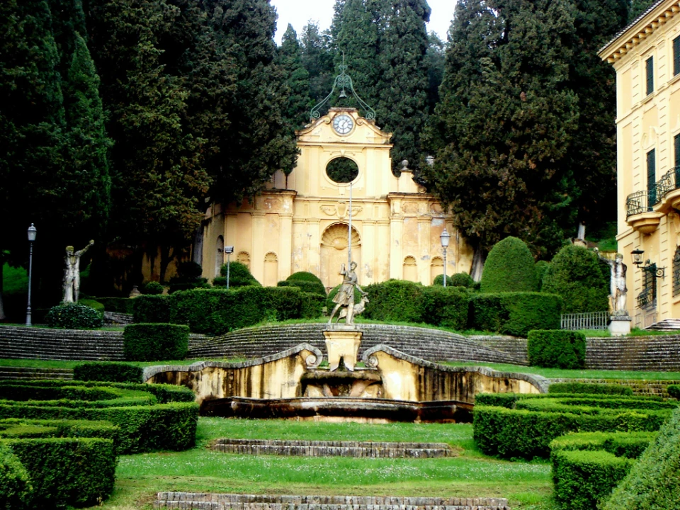 Set up following the restructuring desired by Teresa Pamphili Grillo, it is currently made up of four large flowerbeds enclosed by box hedges whose form seems to have been modified over time, intervalate from boxwood globes (Buxus semrevirens). The study of the plants shows that the domestic flower beds consist of hedges from the year 1920, while much more elderly appear to be external ones. In summer and spring 70 lemon trees adorn the garden, placed on pedestals inserted between the hedges.