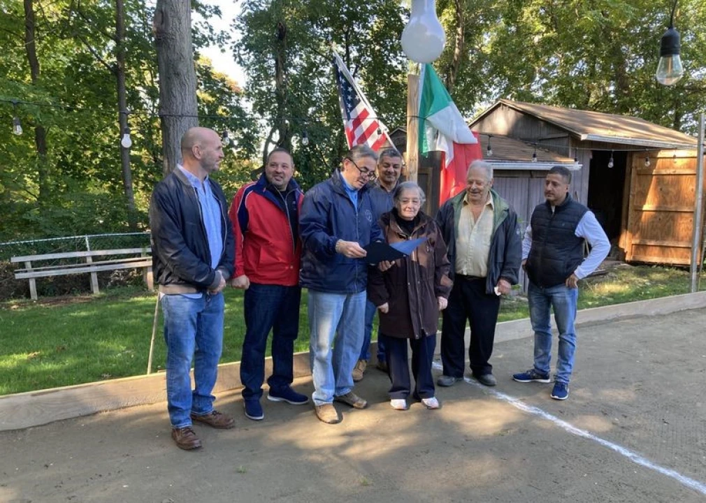 Tomasso and Anthony Mancuso, a father-and-son team who built a regulation-sized bocce court in the backyard of the elder Mancuso’s home on West Allen Ridge Road, challenged the mayor to a match and the traditional meal afterward. Sarno accepted the challenge and brought a proclamation honoring the Mancusos’ dedication to preserving the old country traditions here in America.