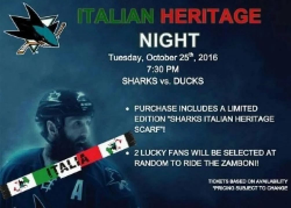 Our San Jose Sharks are back in action and in less than a week we will celebrate "Italian Style" at the SAP center. Hurry and purchase your tickets now for the game on October 25th and tell them you are with Little Italy San Jose or use promo code "Italia" and buy them online at www.sjsharks.com/italia