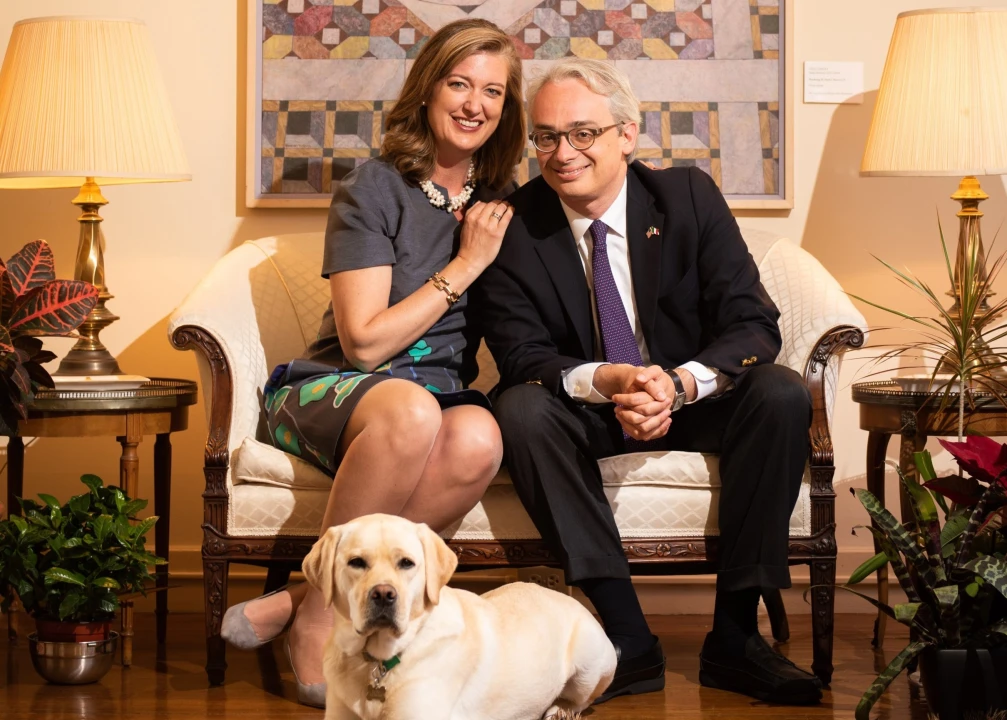 A visit to San Francisco’s Consulate General of Italy typically begins with talk of not dinner but dessert — specifically, zabiaone. That’s because the friendly Labrador that belongs to Consul General Lorenzo Ortona and his wife, the journalist Sheila Pierce Ortona, is named for the dessert of the same deep golden color. They call her Zaba for short, and on a recent after-noon, she was sporting a blue-and-yellow Golden State Warriors collar featuring the City skyline.