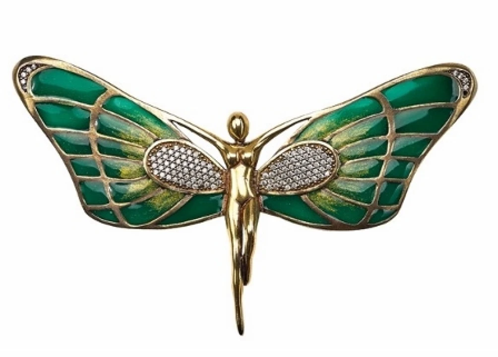 NIKE (in the photo the butterfly brooch yellow silver gold plated) is unparalleled beauty, royal femininity that conquers up to the Pantheon. Nike is the victory of force over fragility and of agility over slowness: the energy of the caterpillar that becomes a butterfly. Nike is the splendor of the cathedral enamels that filter the light, the brilliance of silver plated in gold that recall the color of the sun. It is a seductive and varied line consisting of rings, bracelets, necklaces and brooches embellished here and there with black faceted onyx beads. Perfect balance of grace and fantasy, the style of the line can be broadly interpreted and combined making it suitable to the wardrobe of charismatic personalities.