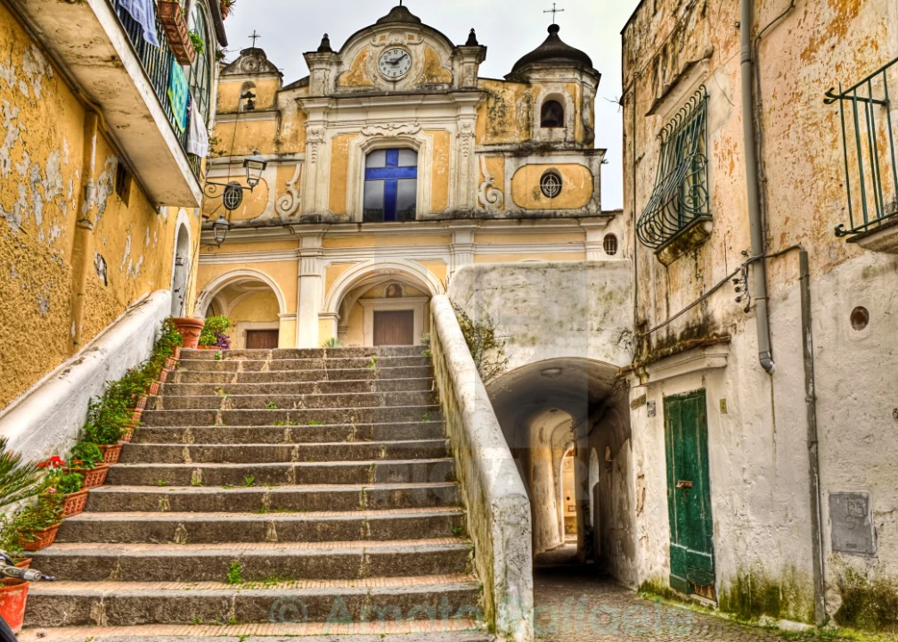 A little further on is the Church of Avvocatella (second half of the seventeenth century), where you can admire the 1758 ceramic flooring. The surrounding scenery is typical of the Amalfi coast, where over the centuries thanks to the natural vegetation of chestnuts and olm oaks, man has begun the cultivation of grapevine and citrus fruits on terraces.