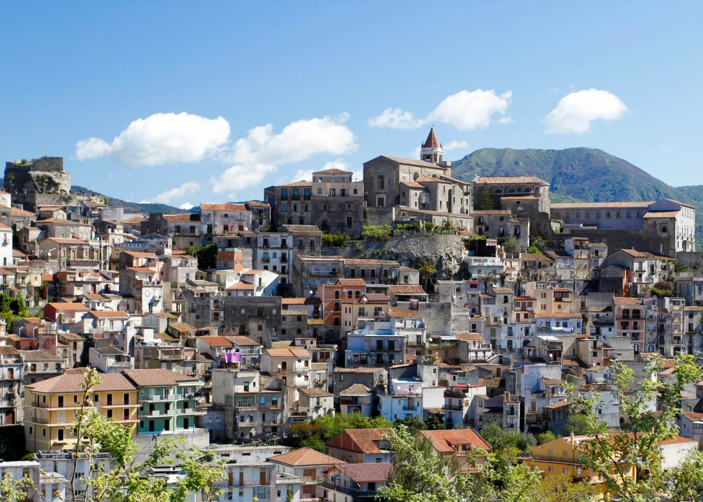 Castiglione stands on a rise overlooking the southern shore of the Alcantara river, with houses set on a steep slope; the locations of the civil and religious power are both on the highest point of the hill.