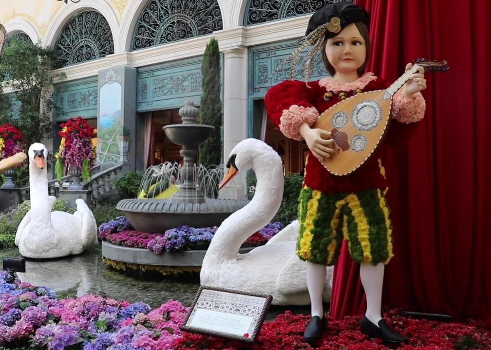 The Bellagio Conservatory’s newest display brings summer to life. The “That’s Amoré” design brings Italy to Las Vegas by way of flowers, intricately designed mosaics and bright yellow lemons. Two large animatronic swans, crafted with real feathers, move and sway in one of the garden’s ponds. Adjacent to the pond, a picnic display features dishes and a rug precisely created with nuts, seeds, herbs and dried fruits.