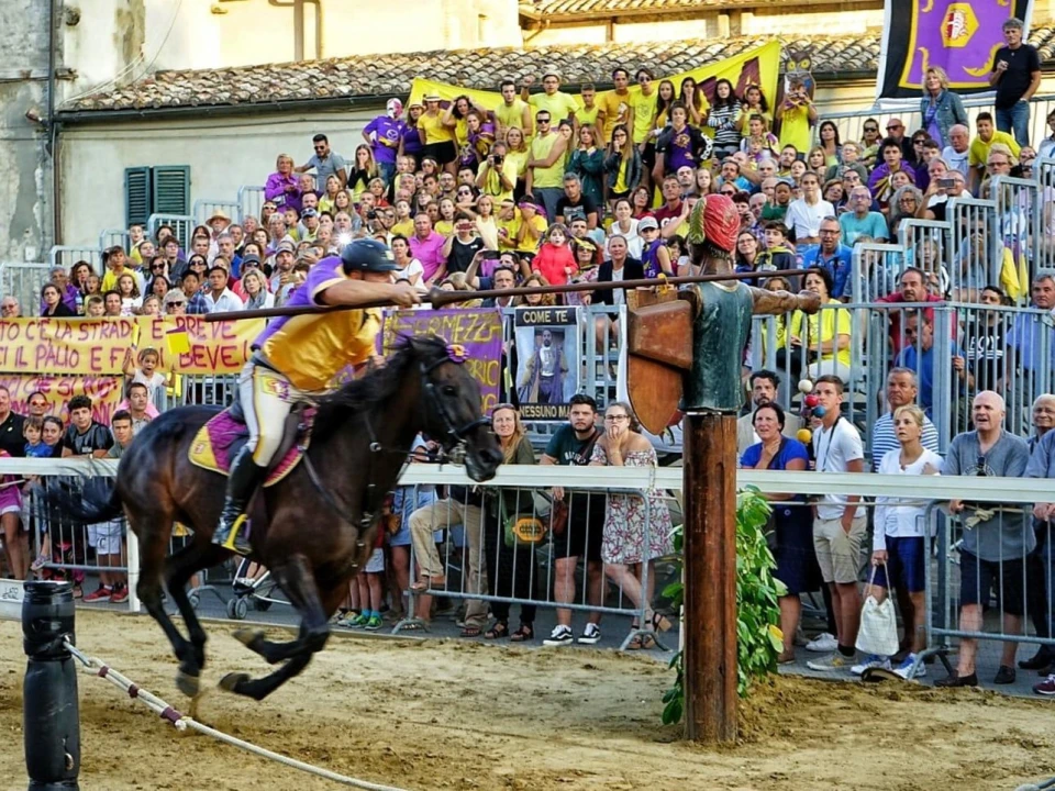 The Giostra del Saracino is an evolution of the ancient and bloody knightly tournaments that have existed since the time of Charlemagne and the Crusades. Over time, the opponent was replaced with a symbolic puppet representing the treacherous Saracen, who in those days ravaged the entire peninsula with raids. The Giostra del Saracino of Sarteano is indissolubly linked to the secular Compagnia di San Rocco: the first archival document dates back to 1583, illustrating the appointment of the so-called "festaioli di san Rocco," who were responsible for organizing various celebrations in honor of the Saint.