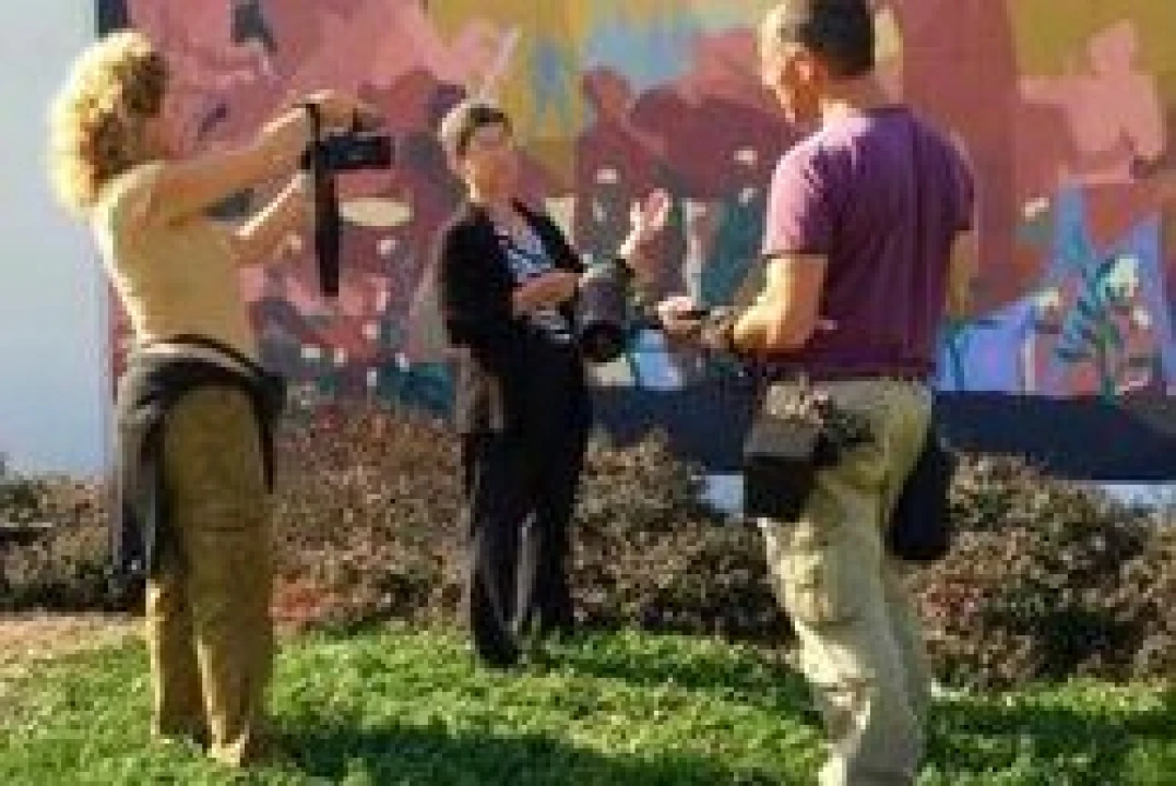 Alessandro Turci and Federica Miglio, whose TV production company is based in Rome, spent part of Wednesday morning filming at the Aaron Douglas Art Park, S.W. 12th and Washburn Avenue.