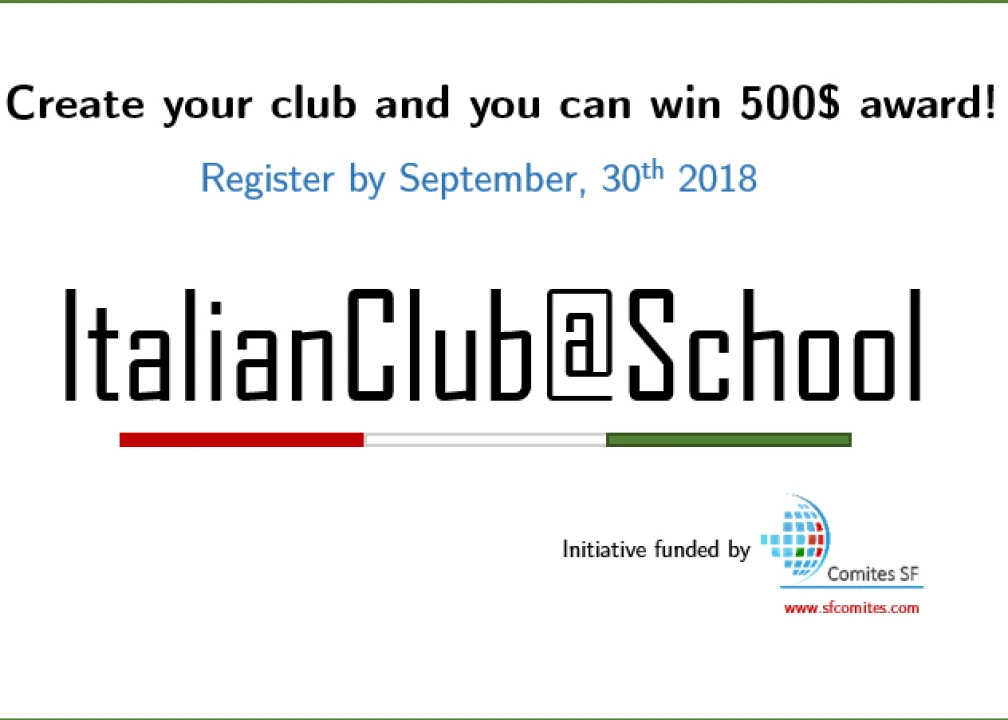 Make your passion for Italy count at school! Join the “Italian Culture and Language Ambassador” program, a project launched by Comites and supported by the Consulate General of Italy in San Francisco. We are looking for enthusiastic, independent and self-driven High School students who are willing to start an Italian Club in their school.