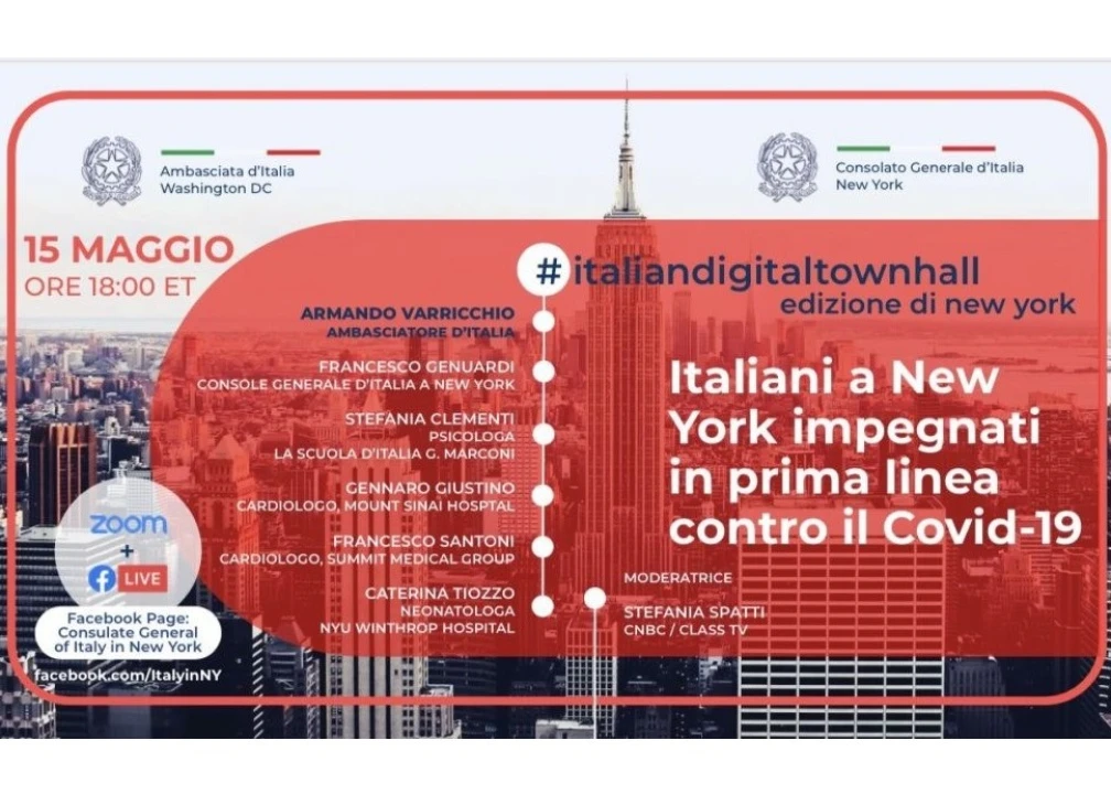 Un’occasione per confrontarsi con i rappresentanti italiani della comunità medico-scientifica che lottano contro il Coronavirus. È il primo appuntamento dell'iniziativa digitale #italiandigitaltownhall, dedicata agli italiani impegnati in prima linea contro il Covid-19 a New York.