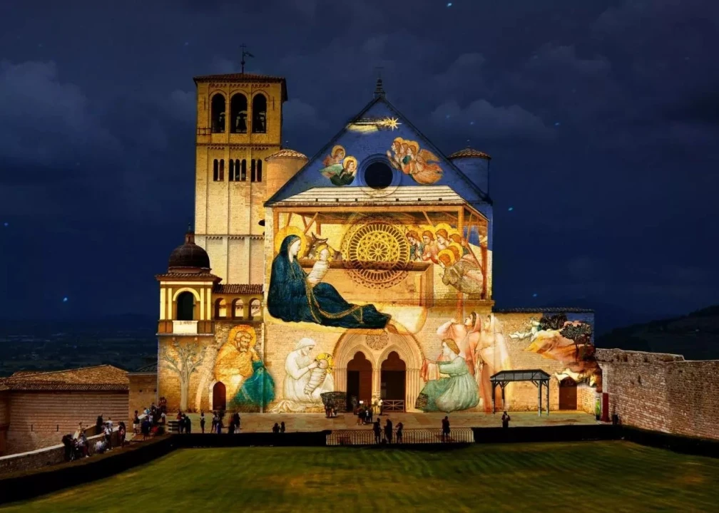 Over the Christmas season the Umbrian town of Assisi will project images of Giotto's Nativity frescoes onto the façade of the Basilica of S. Francesco, each evening from 6 December. Titled Il Natale di Francesco (The Christmas of Francis), the project will beam Giotto's Nativity scenes onto the exterior of the basilica dedicated to Italy's patron saint, as well as on other landmarks around the pilgrimage town.