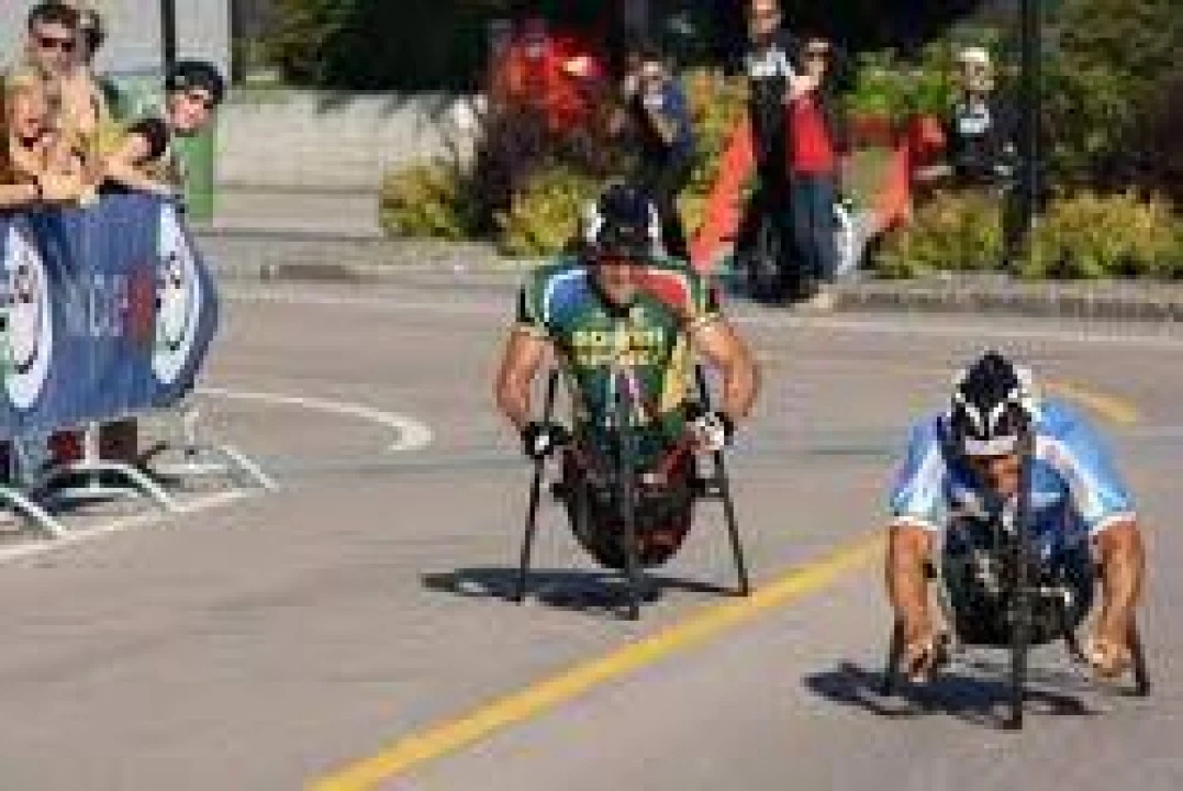 Italy have won the first gold medal of the International Cycling Union Para-cycling Road World Championships, beating the hosts in the handcycling relay.