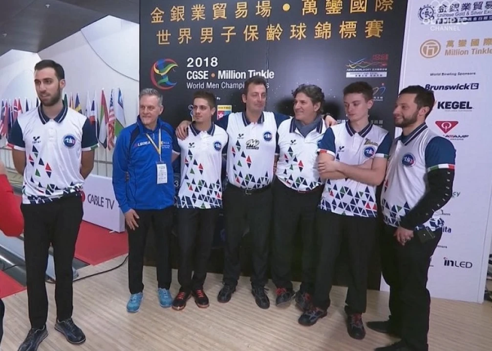 Italy beat the United States 2-0 in the team-of-five final on the penultimate day of competition at the Men's World Tenpin Bowling Championships in Hong Kong. In the best-of-three contest, the Italians won the first match 189-169 before taking the second 210-166 at the South China Athletic Association Bowling Centre.