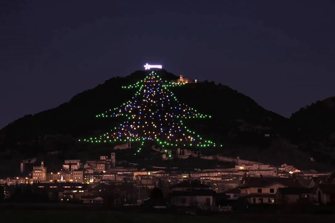 The "world's largest Christmas tree" is lit up each year on the slopes of Monte Ingino, overlooking the mediaeval town of Gubbio in Italy's central Umbria region. To mark the festive season, the town illuminates its magical Christmas tree-shaped installation with more than 700 lights in an annual ceremony that started in 1981.