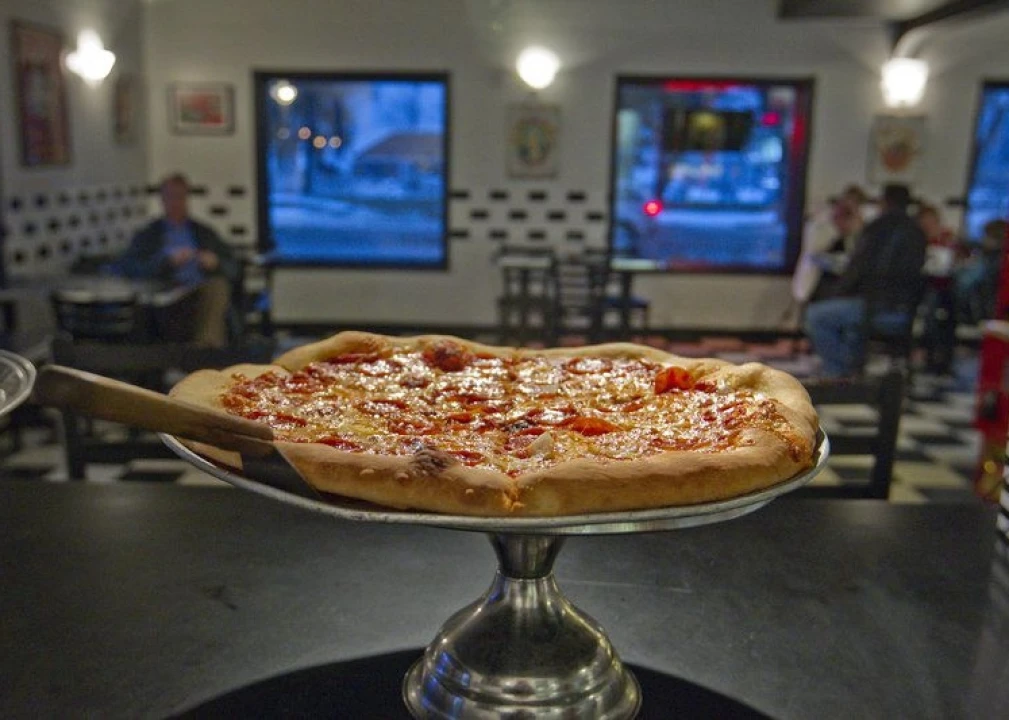 The new pizzeria in the old Happy Hog Café space offers Neapolitan-style, Sicilian and New York-style pizza, and pasta dishes like its signature Maccheroni Napoletana — classic macaroni and “gravy,” or Italian meat sauce. A “pasta of the day” features everything from stuffed shells and ravioli to tri-color fettuccine with ham, peas and mushrooms in cream sauce.