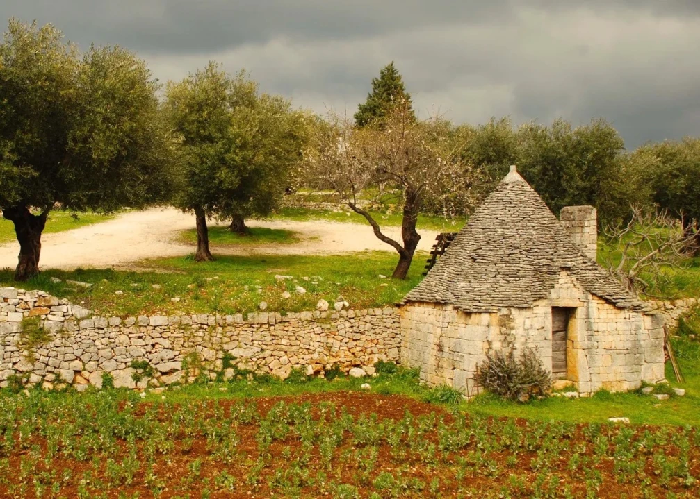Fifty-six kilometres south of the Puglian port city of Bari, on the heel of Italy's boot, I could see several small stone huts with conical rock-covered roofs scattered among the olive trees on both sides of the road. Reminiscent of teepees or tiny forts, these structures were unlike anything I'd ever encountered.