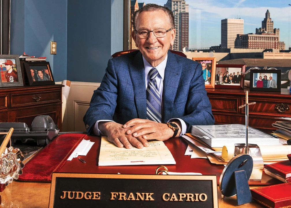 Providence Municipal Court Chief Justice Frank Caprio opens the passenger side back door of a metallic blue 2018 Lincoln Navigator parked on the side of the private Aurora Club Civic Association in Providence’s Federal Hill. It’s the place where he is permanent director and has been a member for more than fifty years, and he has lunch there on an almost daily basis.