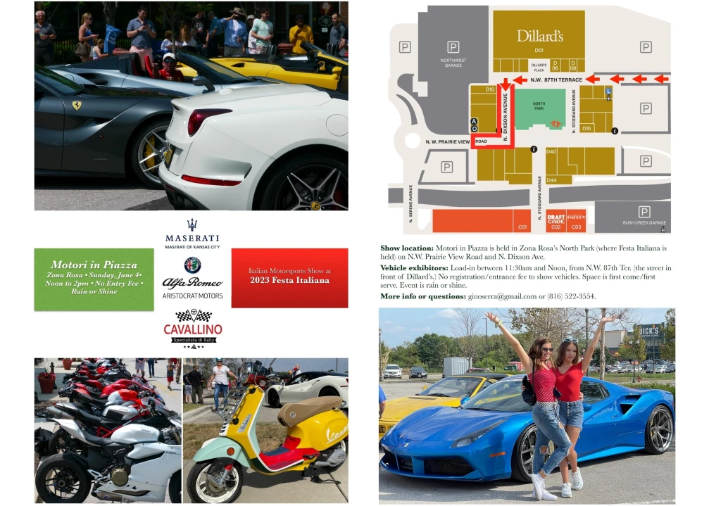 Free admission and no cost or pre-registration to display vehicles. For those wanting to display their Italian marque cars, motorcycles or scooters, see the information on the second page of the flyer. Festa Italiana is the annual fundraising event for UNICO of Kansas City, a 501(c)(3) and the largest Italian-American service organization in Kansas City.