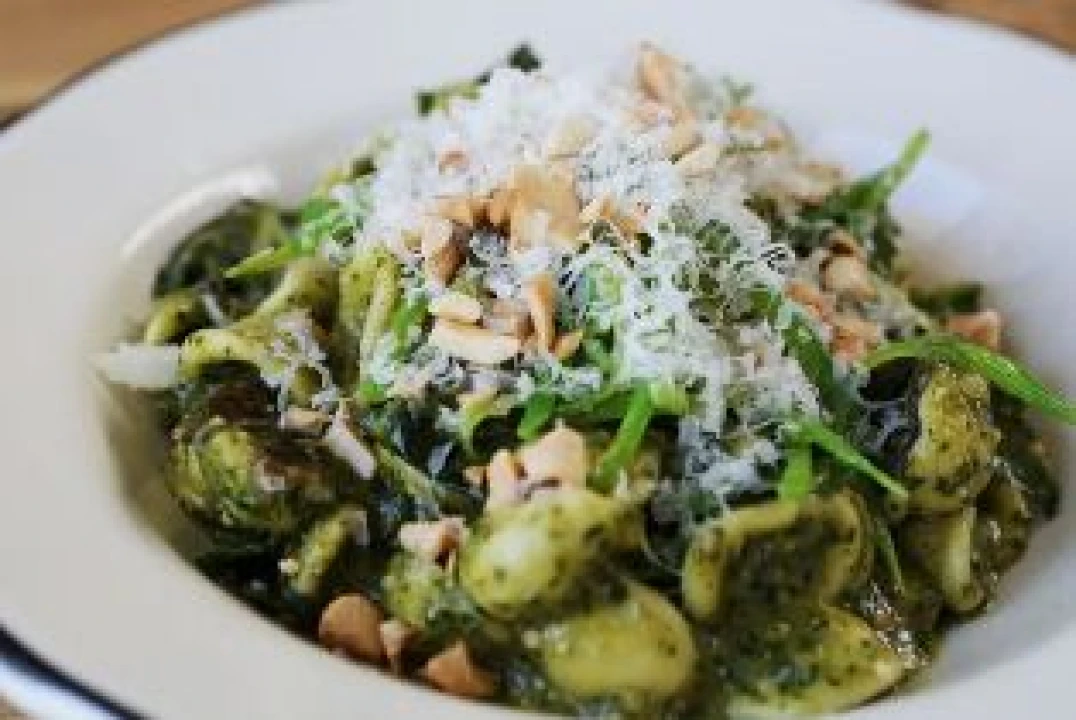 "We're trying to make the menu a bit lighter, since the weather is so hot here ... make it fun and interesting for everyone," Calderin said. The Orecchiette pasta with dandelion pesto, shiitake mushroom, shaved snow peas and cashews was inspired by Calderin's previous trips to Italy.
