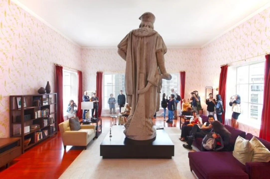 NEW YORK- La statua di Cristoforo Colombo, che domina Columbus Circle, dal 20 settembre scorso è stata circondata da un monolocale. Un appartamento moderno e attrezzato, con una vista mozzafiato, ed interni confortevoli. Ottantamila visitatori lo hanno visitato in questi ultimi due mesi, salendo diverse rampe di scale, e trovandosi a tu per tu con l'intrepido navigatore. Senza fretta molti si rilassano sul divano, sfogliano una rivista, e ogni tanto gettano uno sguardo verso il navigatore. Sempre nella stessa posizione da 120 anni.