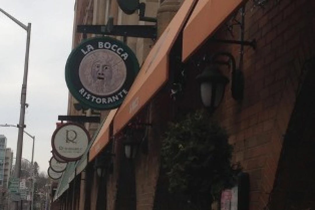 La Bocca Ristorante's storefront on Church Street in downtown White Plains blends in with its surroundings, but its logo is definitely an attention grabber.
