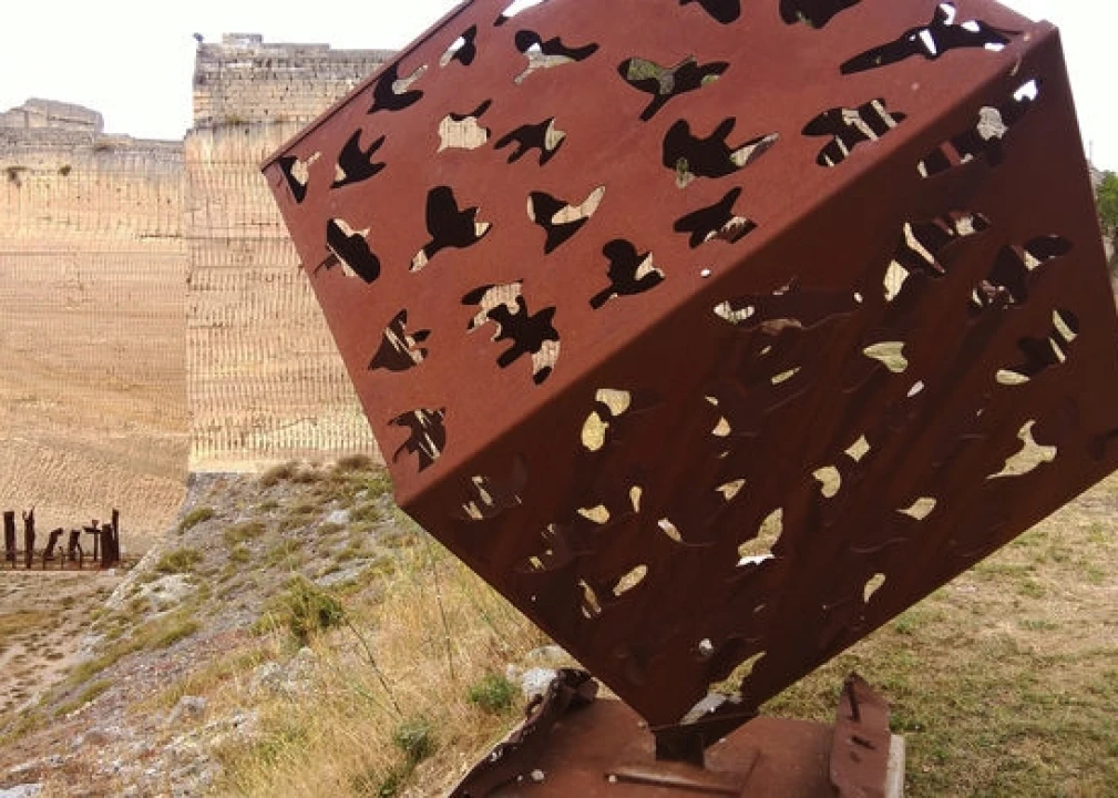 La Palomba,” which means “The Dove” in English, is located just outside Matera, a popular tourist spot in Italy famous for its ancient town. Though the sculptures are right next to a main road, they’re easy to miss unless you know to look for them. The artwork is obscured from view, tucked out of sight in a defunct tuff quarry.