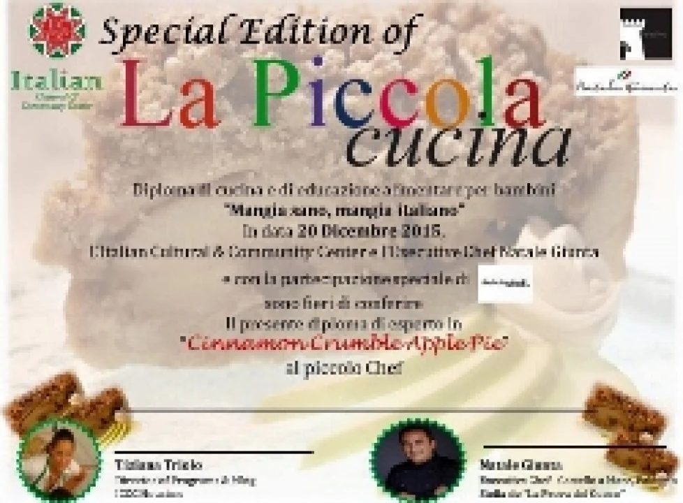 Domenica 20 Dicembre si terrà a Palermo, presso il Castello a Mare un'edizione speciale de "La PiccolaCucina", programma di successo del Centro di Cultura Italiana di Houston (www.iccchouston.com) ideato, implementato e condotto, da Tiziana Ciacciofera Triolo, direttrice dei Programmi e del Marketing del Centro. Tiziana, Palermitana DOC si è trasferita a Houston quasi 5 anni fà ed oggi è punto di riferimento in Texas per la promozione delle tradizioni culinarie regionali Italiane.