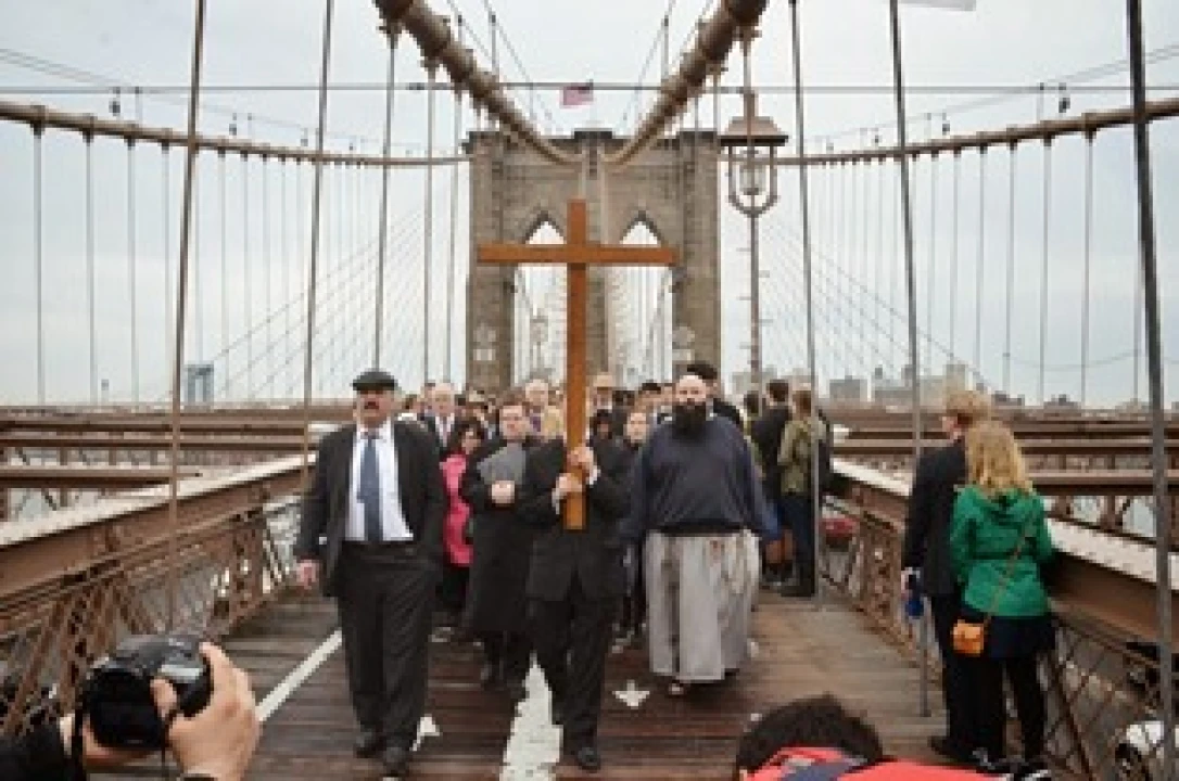Come venti anni fa, quando una trentina di fedeli di Comunione e Liberazione si avviarono sul ponte di Brooklyn per la prima processione del Venerdì Santo, anche ieri il cielo era grigio con pioggia a tratti, che tuttavia non ha dissuaso oltre duemila persone a seguire la Croce nel suggestivo percorso.