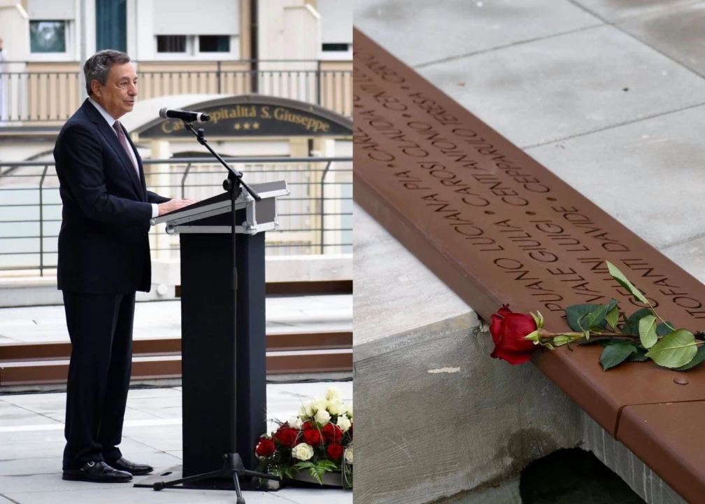 Draghi said the memorial park is an open space symbolic of "the emptiness left by those who died that terrible night" but added that it will be filled by families and children at play among the fountains, "a symbol of life that must be reborn by drawing strength from the memory of a tragedy."