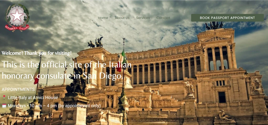 Sono stato nominato console onorario italiano di San Diego nell'autunno del 2019. È un onore e un privilegio servire in questo ruolo come rappresentante del governo italiano, una posizione che ha integrato il mio lavoro nello spazio artistico e culturale italiano. A livello locale, il nostro ufficio assiste i connazionali con il rinnovo del passaporto e aiuta gli studenti a ottenere il visto per studio all'estero, verificando la loro identità per accelerare il processo.