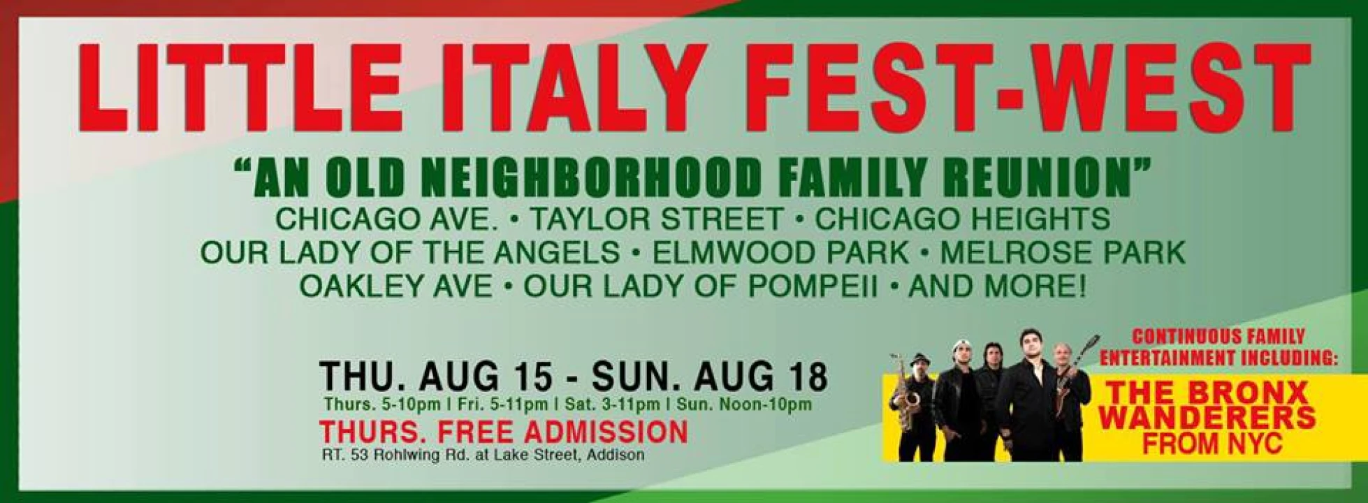 All things Italian are about to be celebrated at Onesti's Little Italy Fest-West in Addison. It's known for Italian specialties from area restaurants, and entertainment by Italian-American singers and performers from around the nation, including The Bronx Wanderers from New York.