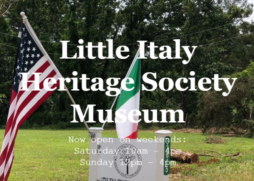 The Little Italy Arkansas Heritage Society museum is now open on weekends (Saturday 10am - 4pm and Sunday 12 noon - 4pm) and hope you will come by to sign our guest book and enjoy learning about the only Italian Enclave in Central Arkansas, our beloved Little Italy! Our museum shop is also open and we have postcards, books, pins, and other items.
