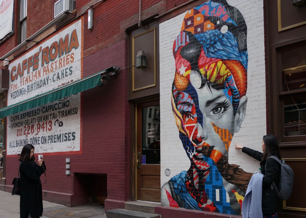 They were in Little Italy in New York City. Behind them was a colorful, abstract mural of Audrey Hepburn, created by street art muralist Tristan Eaton. A curious juxtaposition, but both belonged: those men who...