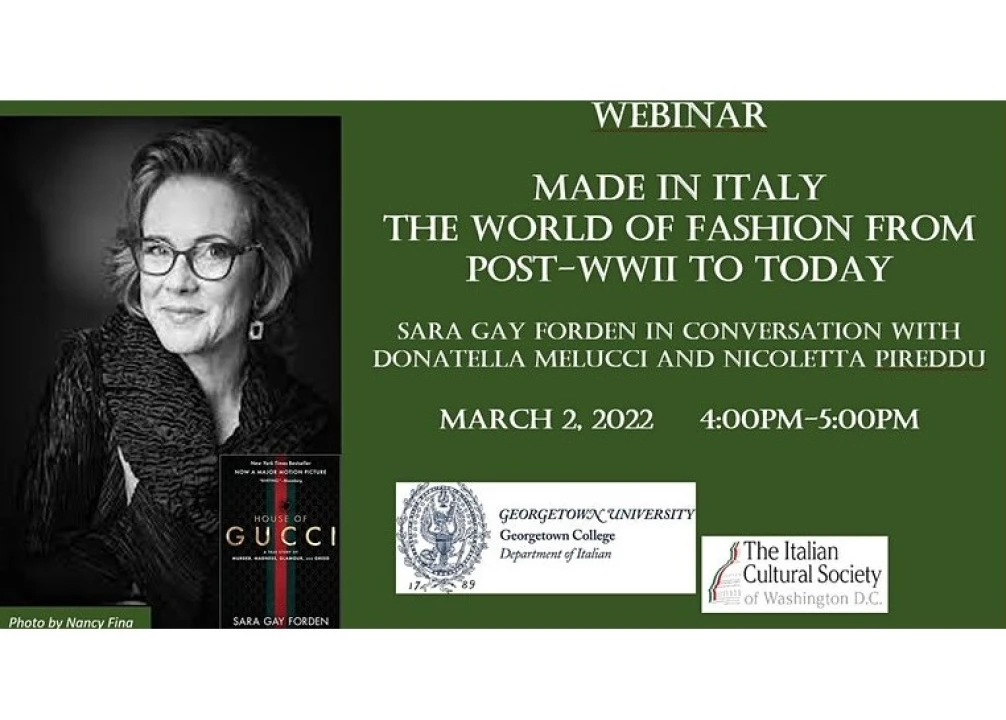 The Department of Italian and the Italian Cultural Society of Washington DC invite you for a talk with international business correspondent and bestselling writer Sara Gay Forden, in conversation with Donatella Melucci, Teaching Professor and Nicoletta Pireddu, Professor of Italian and Comparative Literature at Georgetown University and Inaugural Director of the Georgetown Humanities Initiative.