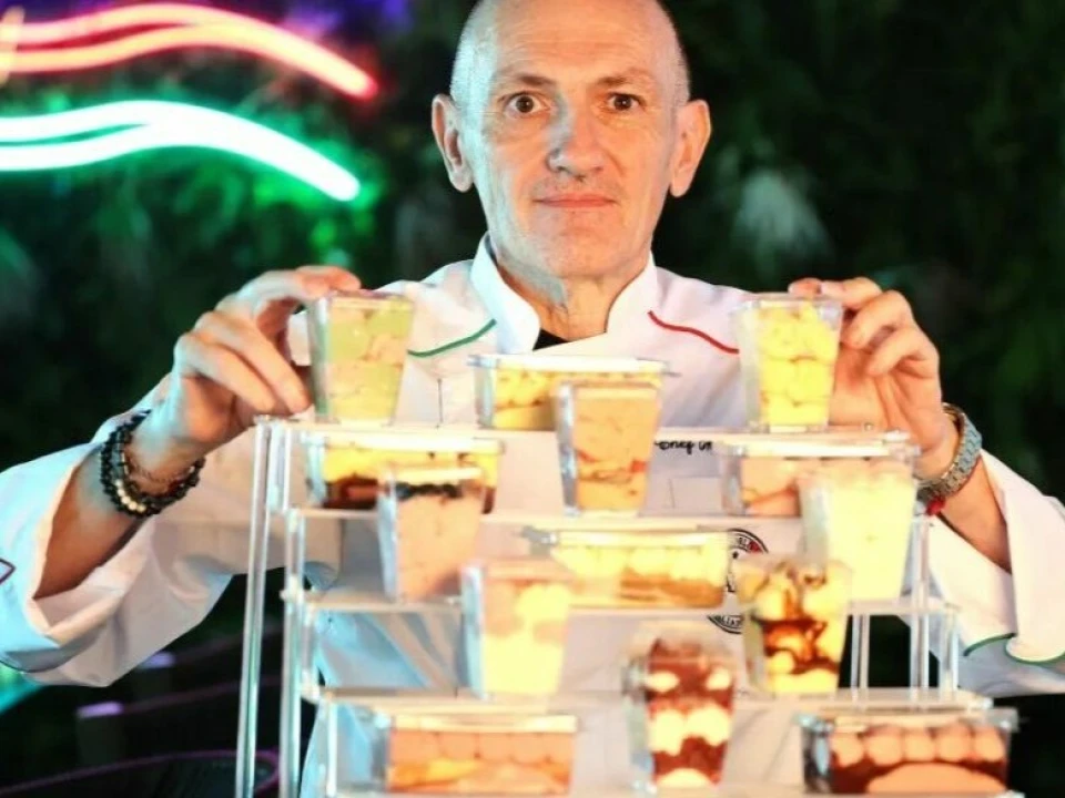 Before a captivated audience and international TV cameras, Marco Casula – now known around the world as “Mr Tiramisù” – delivered a breathtaking live show cooking performance, unveiling the legendary Golden Tiramisù, a masterpiece that left the crowd speechless.