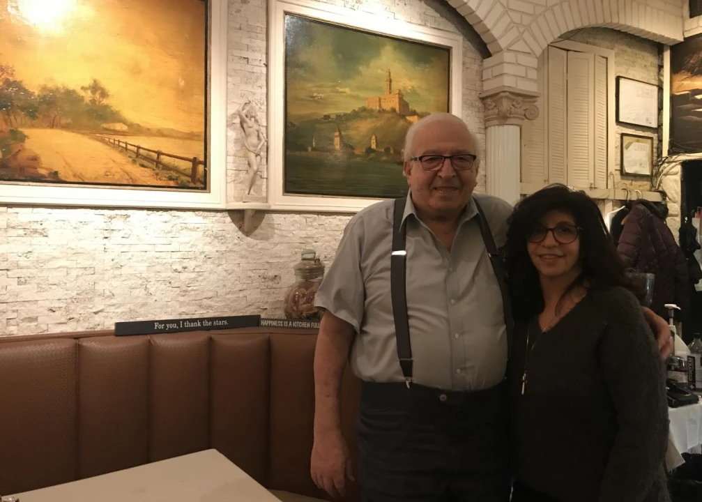 From a booth back near the kitchen, Joe Migliucci presides over the restaurant his family has owned and operated for over 100 years. A family crest hangs over the door where his daughter Regina Miggliucci-Delfino greets customers. To her left is a series of paintings and pictures showing her grandparents and great-grandparents.