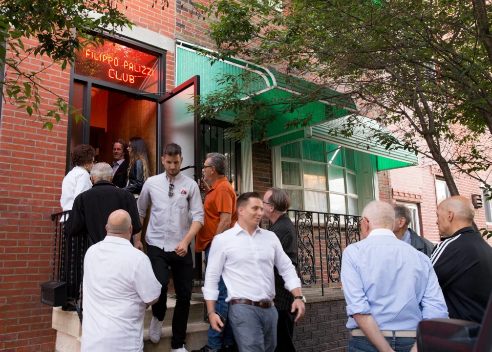 The reedy tunes of a live accordion filter past him through the opening on a stromboli-scented breeze as he inspects my nervous host’s paperwork. Then the door swings open toward us, the club rules are noted (among them, “No … reviewing”), and we’re allowed to pass through the curtains into the checkerboard-floored wonderland of Italian American history that is the Palizzi Social Club.