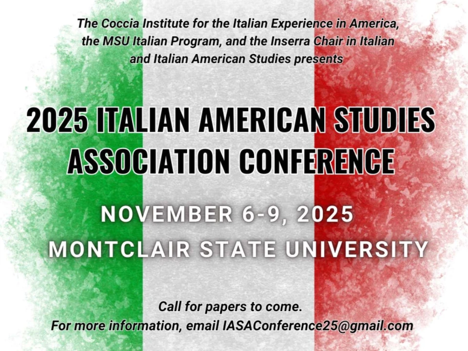 The Coccia Institute for the Italian Experience in America, the MSU Italian Program, and the Inserra Chair in Italian and Italian American Studies will host the 2025 Italian American Studies Association (IASA) Conference at Montclair State University from November 6-9, 2025.