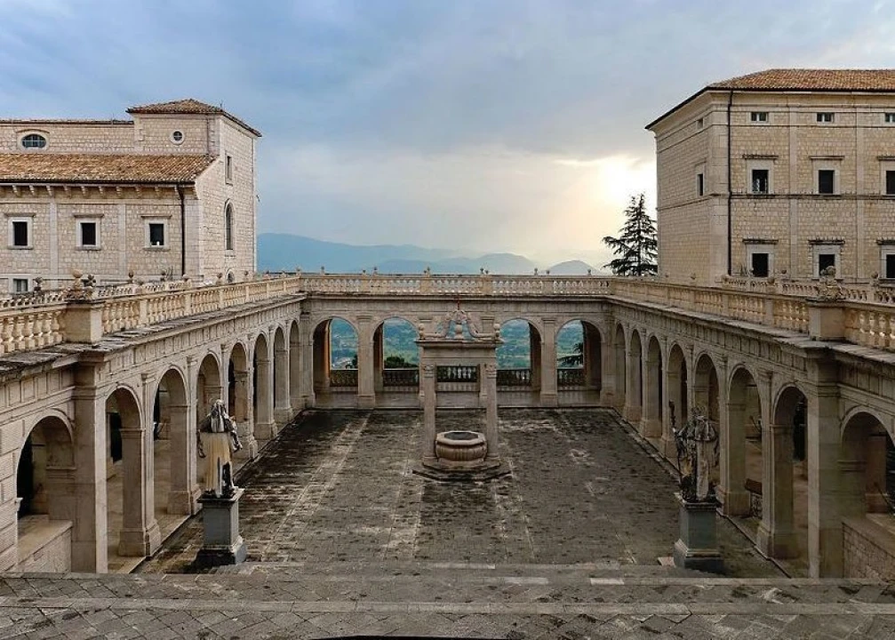 Dramatically located in the mountains of Lazio, this beautiful abbey was the first monastery of the Benedectine Order. It was established in 529 by Saint Benedict of Nursia, the patron saint of Europe, who is considered the founder of monasticism in the West. In the nearly 1,500 years since then, Montecassino Abbey has experienced more than its fair share of traumatic events.