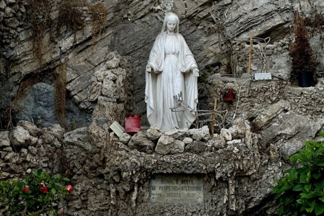 Her image veiled oversees bars, gelaterias, and even butcher shops—a commercial patron saint. You see her plastered on walls throughout Italy, guides taking countless nonne e nonni to famous Marian shrines across Europe. You know you’re Italian when Lourdes, Fatima, and Medjugorje ring an immediate bell.
