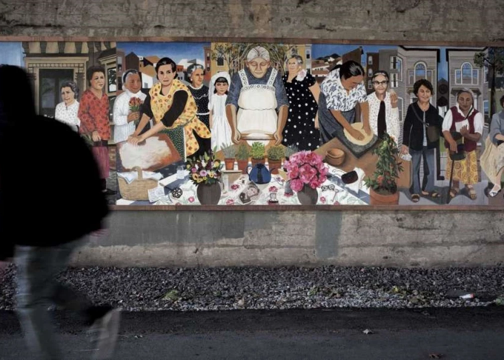 One mural features a Russian couple who founded a local liquor store empire with a Dominican man who owns an electronic repair store. Another depicts an Italian catering company owner and a Mexican community activist. The works of art also include a quote translated into Spanish, Italian, Yiddish and other languages: "You will always be welcome in the city of Boston."