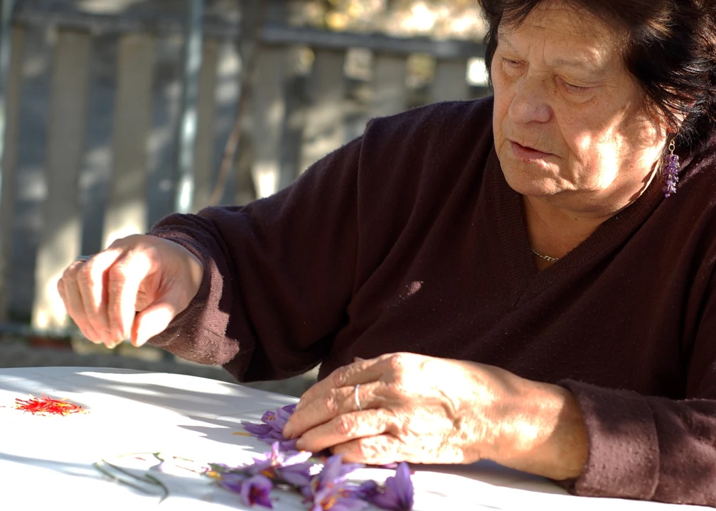 The contrast in colours from the 3 delicate red stigmas cloaked by purple petals on an Abruzzo Autumn day couldn’t be stronger; the saffron crocuses of Navelli are worth their weight in gold, and knowing that no Risotto Milanese is complete without it, they provide a never-ending market that is not reliant on fad or fashion.