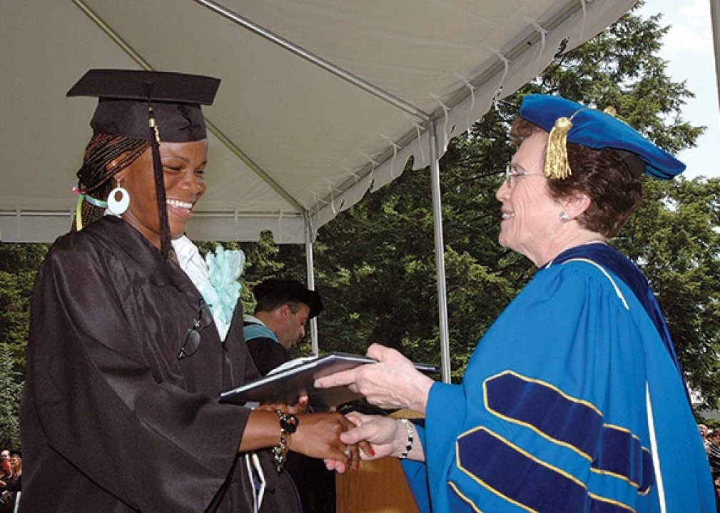 She starts her morning on the treadmill because she spends much of her day sitting at a desk or meeting table, trying to help the school “expand the human capacity that gives our lives passion and purpose,” as she phrased it in 1996 when she assumed the office. Each evening, she eats a light dinner and uses the burst of energy to respond to emails from earlier in the day.