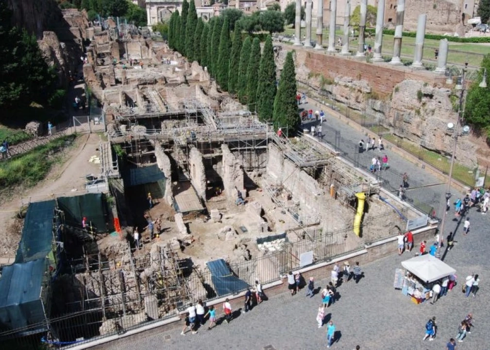 The oldest traces (le tracce più antiche) date back to simple huts built in the tenth to fourteenth centuries B.C. (A.C. for Avanti Cristo, before Christ, in Italian). Panella’s dig has centered on the swath of land between the Colosseum and the Arch of Constantine, the very heart of ancient Rome.